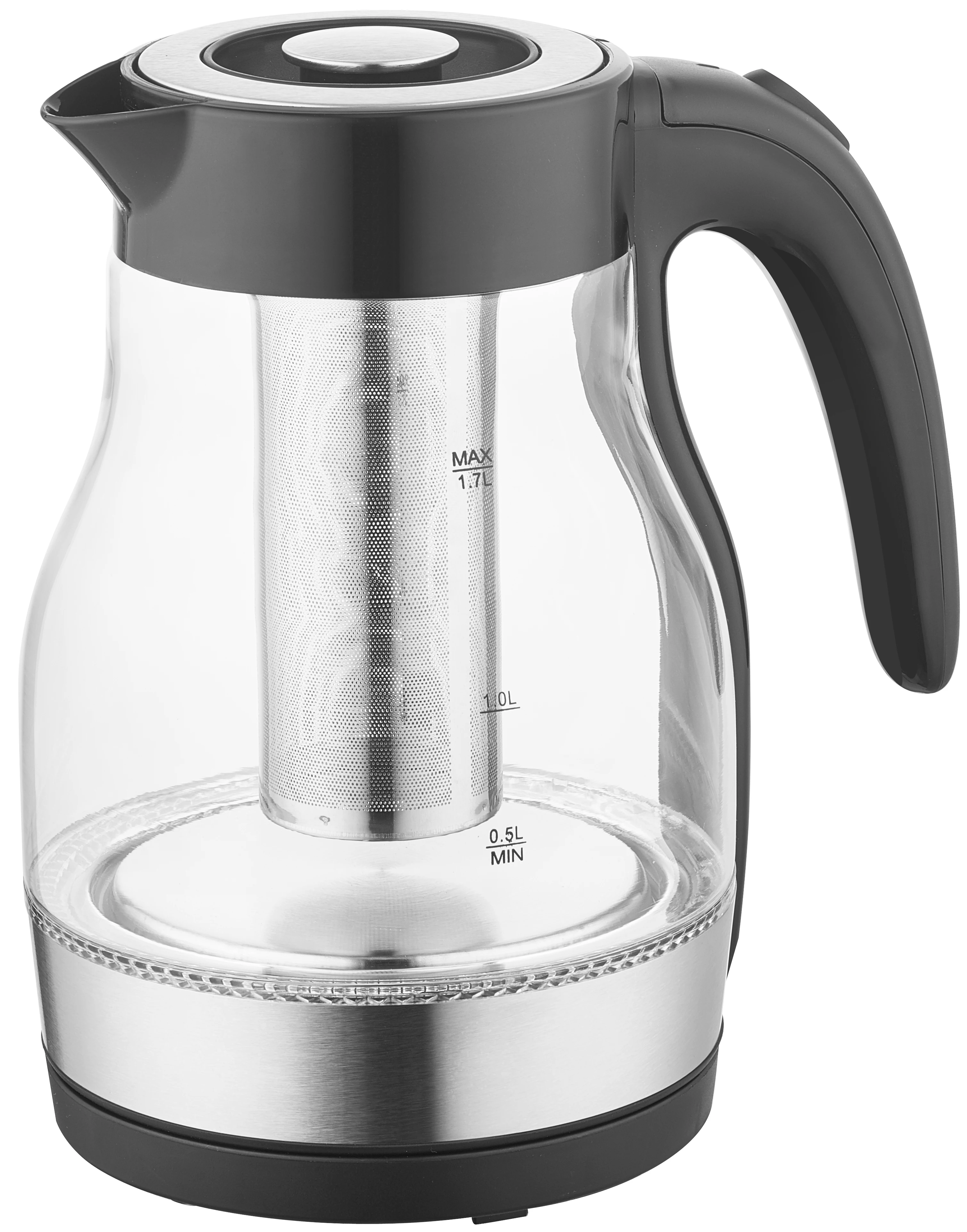 HHB8706 Топ новый тип товара стальная труба большого диаметра легко чистится 304 из нержавеющей стали 2200W 1.7L 360 градусов стеклянный электрический чайник для воды
