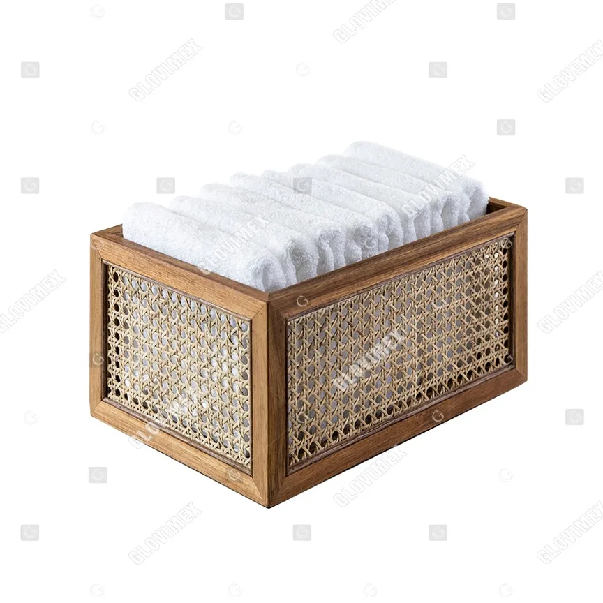 Тканая бамбуковая корзина из ротанга Vietrustic, корзина для хранения мелочей, Домашний Органайзер, коробка для салфеток, корзина с деревянной рамкой