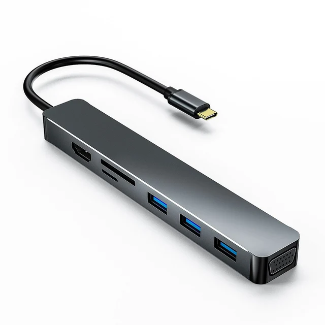 Новое поступление 7 в 1 USB C концентратор HDMI VGA USB 3,0 TF/SD кардридер многопортовый адаптер док-станция с проводом-7 в 1 алюминий