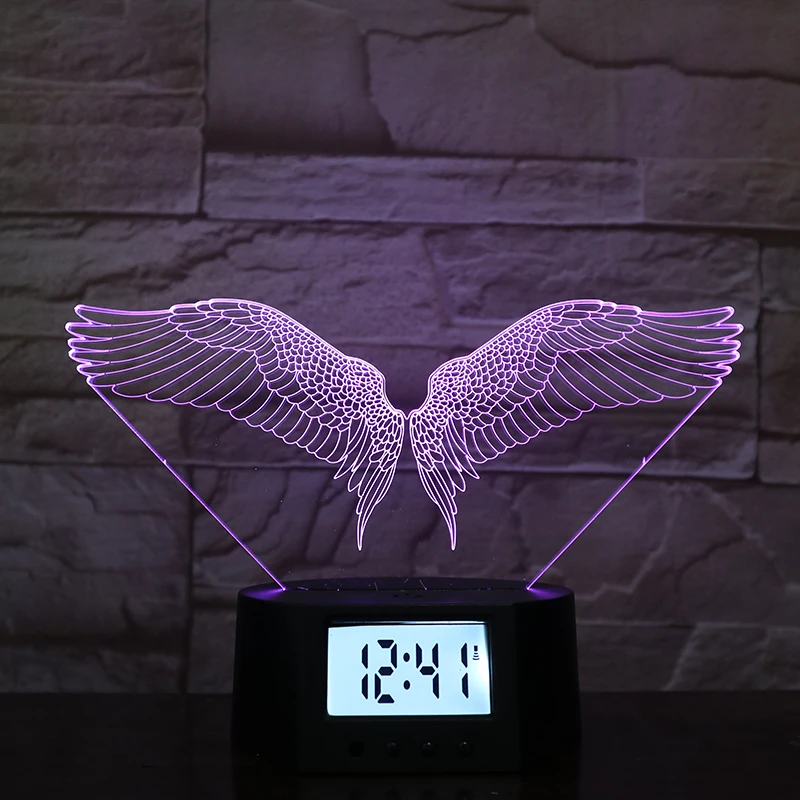Очаровательный красивый дизайн крыла разные цвета освещение будильник основа светодиодная Ночная лампа украшение для спальни