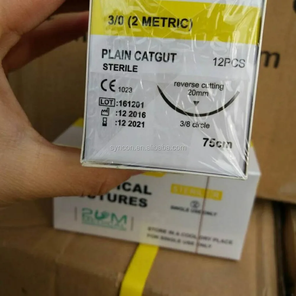 Высококачественные медицинские расходные материалы, одноразовые абсорбируемые простые CATGUT PC Стерильные Хирургические нити с иглами