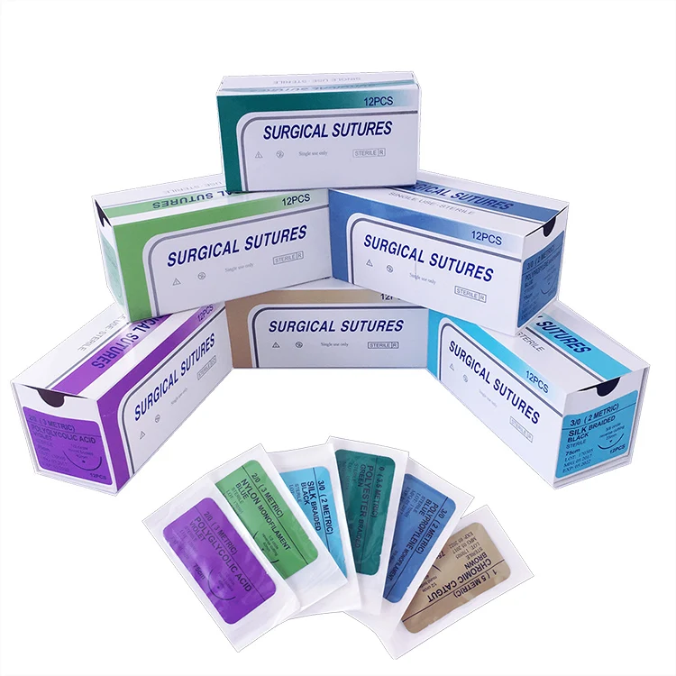 Материал для швов, различные размеры, абсорбируемый хирургический шов с иглой