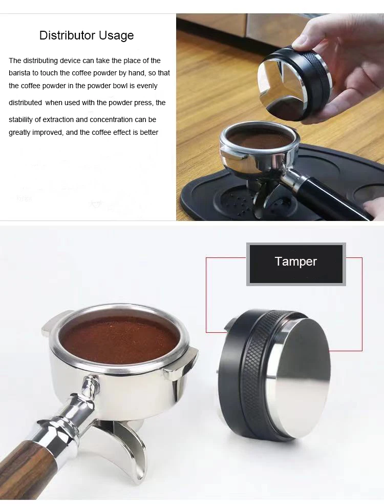 AMAZON 51mm 54mm 58mm Custom 304 Stainless Steel Adjustable 3 Leaf Base Leveler Dual Head Espresso Coffee Distributor and Tamper