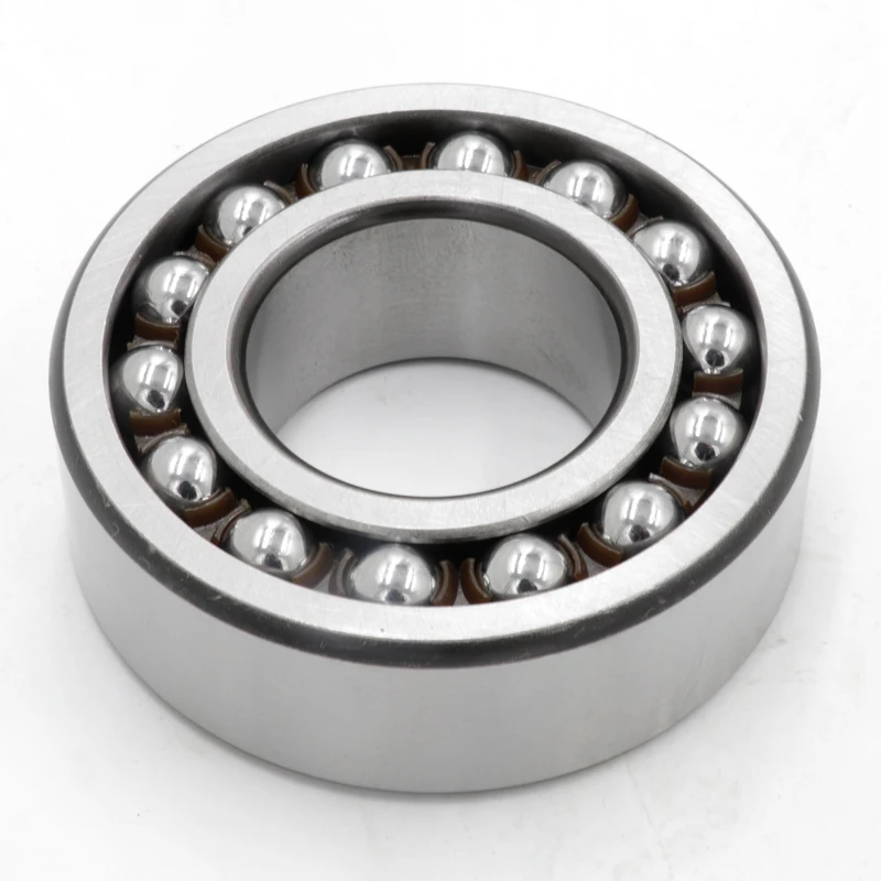 This type of ball bearing is recommended when alignment of the shaft and housing is difficult and the shaft may flex. The outer ring has a spherical raceway and its center of curvature coincides with that of the bearing; therefore, the axis of the inner ring, balls and cage can deflect to some extent around the bearing center. Pressed steel cages are usually used. Since the contact angle is small, the axial load capacity is low. The permissible dynamic misalignment is approximately 0.07 to 0.12 radian (4 to 7 degrees) under normal loads.