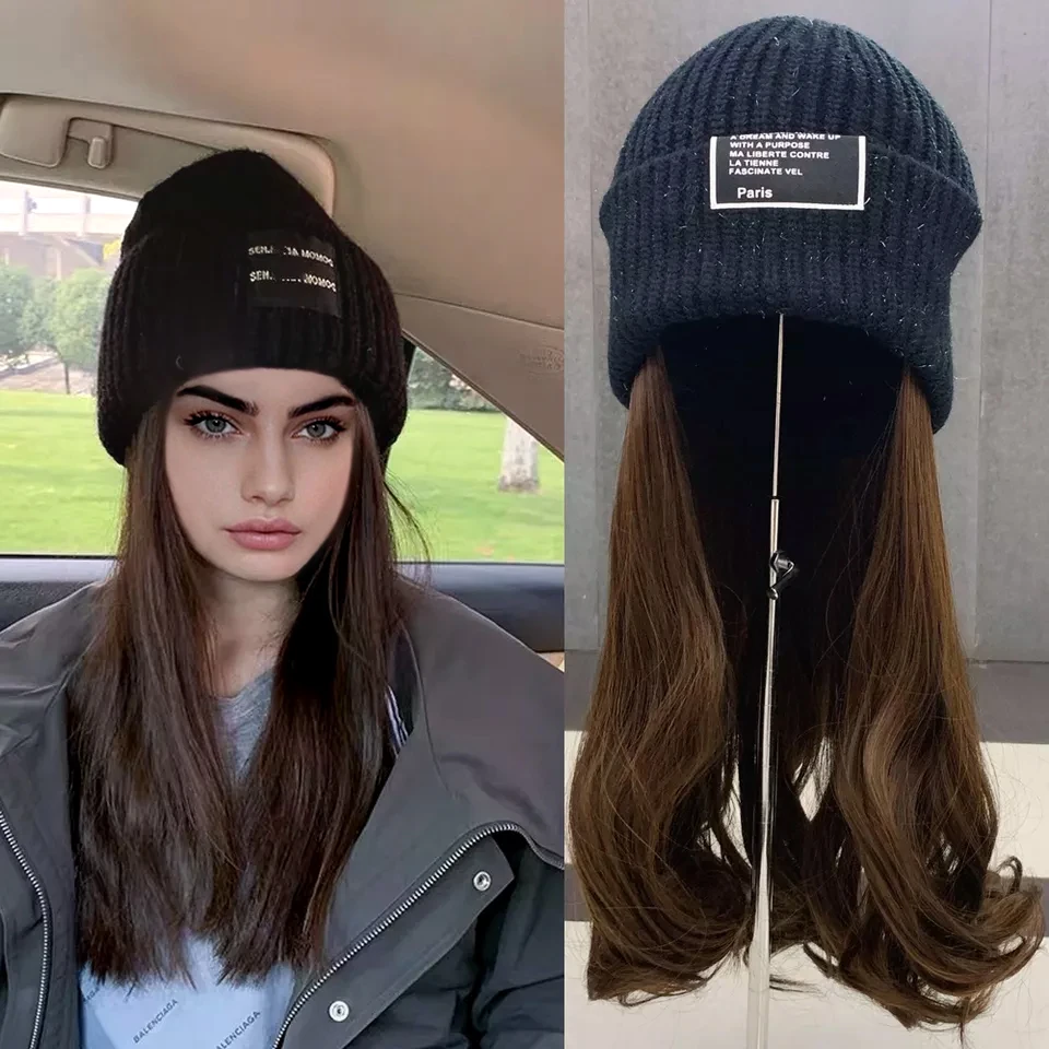 Горячая распродажа длинная волнистая Зимняя шерстяная шляпа парик производитель зима 22 дюйма розовый черный красный цвет вьющиеся волосы шляп 1 115,56 ₽ - 1 305,44 ₽