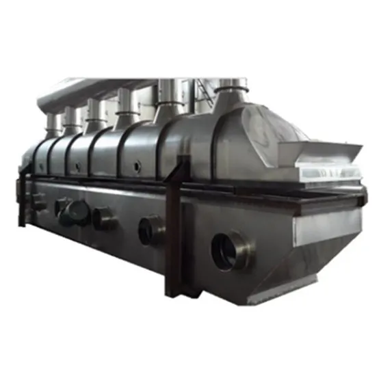 Сырье поступает в сушилку для кровати fliud с входа и непрерывно движется вперед вместе с уровнем кипящего слоя под действием вибрации. Горячий воздух проходит Через кипящую кровать и осуществляет теплообмен с влажным сырьем. Затем влажный воздух вырывается через циклонный сепаратор и удаляется через разряд сухого сырья На выходе.