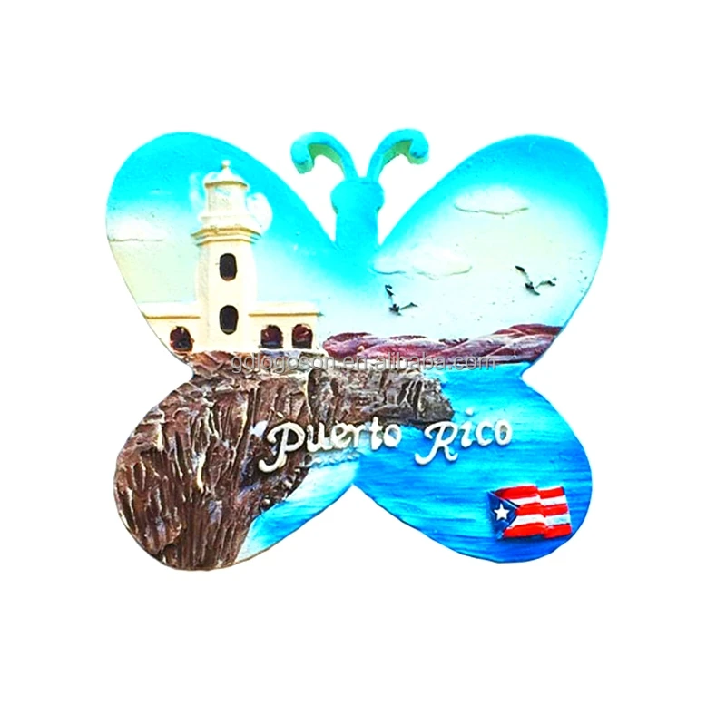 Дорожные сувениры Пуэрто-Рико с ручной росписью Карибского моря, магнит в форме бабочки для холодильника, 3d магниты для холодильника из смолы
