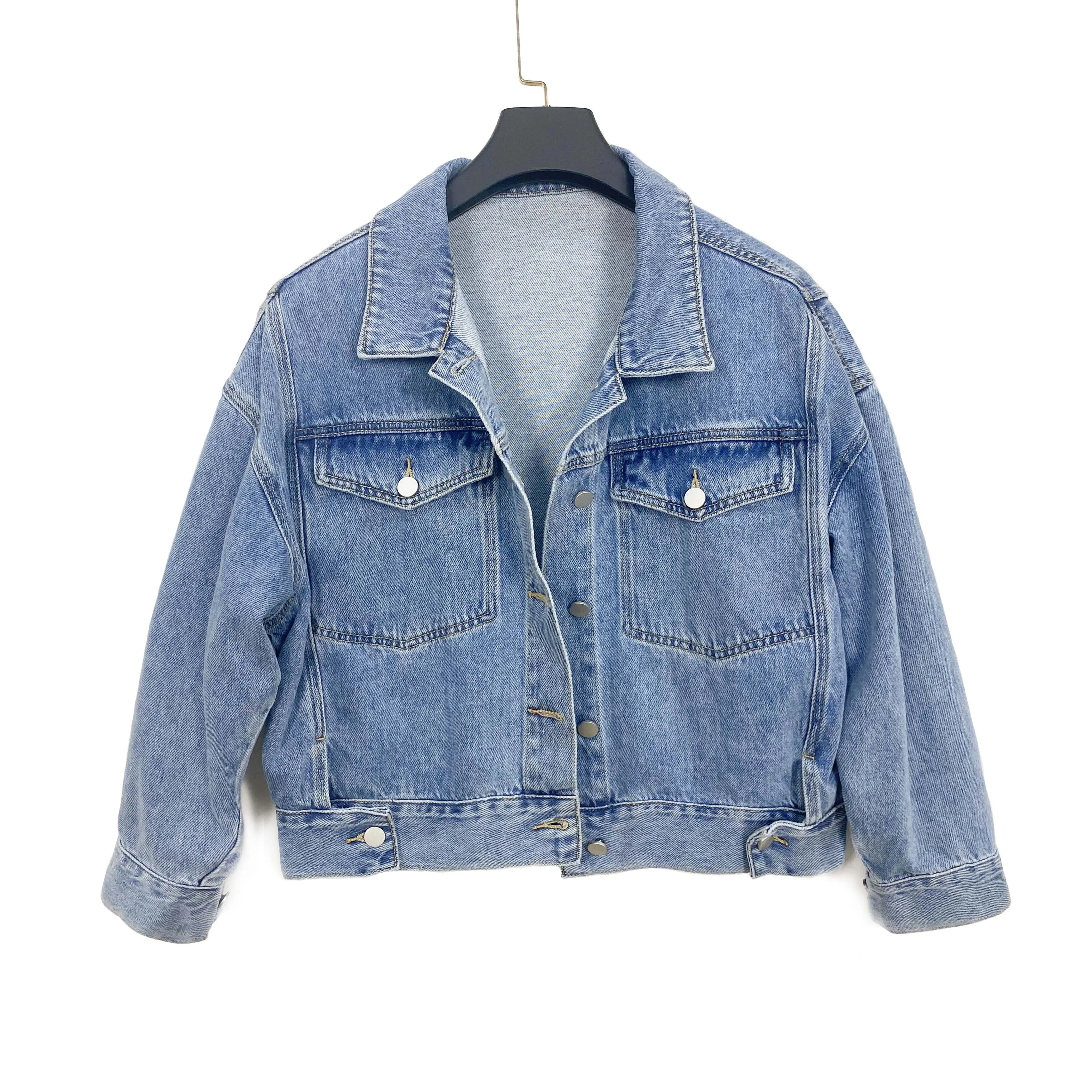 Джинсовая женская рубашка из чистого хлопка, с длинным рукавом