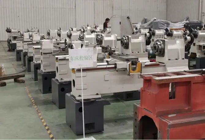 1.The major basic parts such as the lathe bed, lathe feet, the middle supporting plate, the spindle box are all made of HT250 cast iron. The lathe feet are the structure of box type, The compact and reasonable symmetric structure ensures high rigidity and bending vibration performance of basic parts, which guarantees the rigidity and precision of Z axis effectively when it is cutting. The castings adopt the type of resin sand molding and have been processed by the aging treatment, The guide rail surface of lathe bed adopts superaudio quenching and the penetration depth can reach to 2 mm, which provides the guarantee for the stability of lathe for a long time using.
