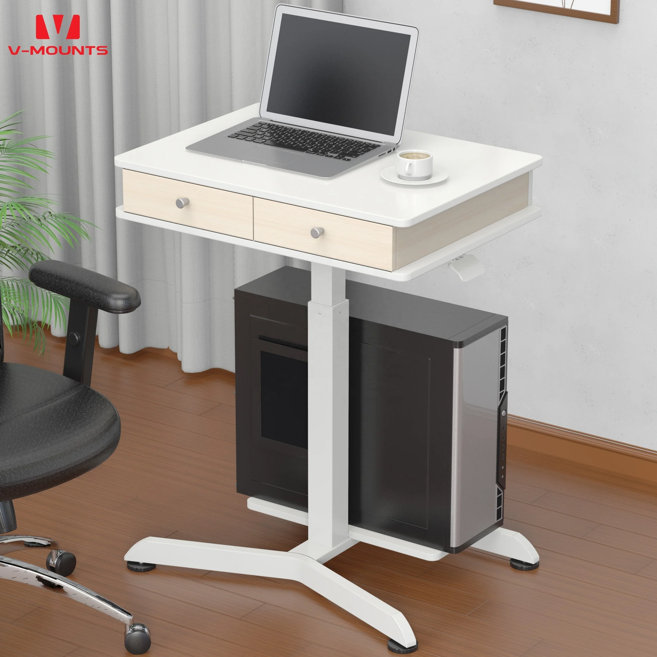 V-крепление Запираемая газовая пружинная ручка Регулировка мобильный стоячий стол с противоскользящей VM-FA110