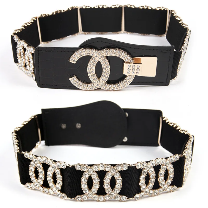 Пояс с двойной пряжкой Женский, модный широкий эластичный брезентовый пояс с золотистой пряжкой