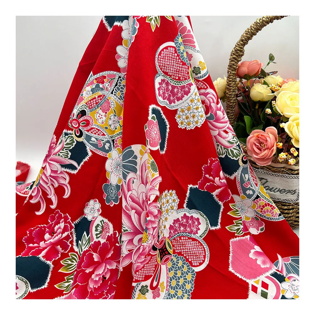 Заводская цена от производителя красная винтажная вискозная ткань под заказ Тропический Принт 100 вискоза вискозная ткань с принтом для рубашки