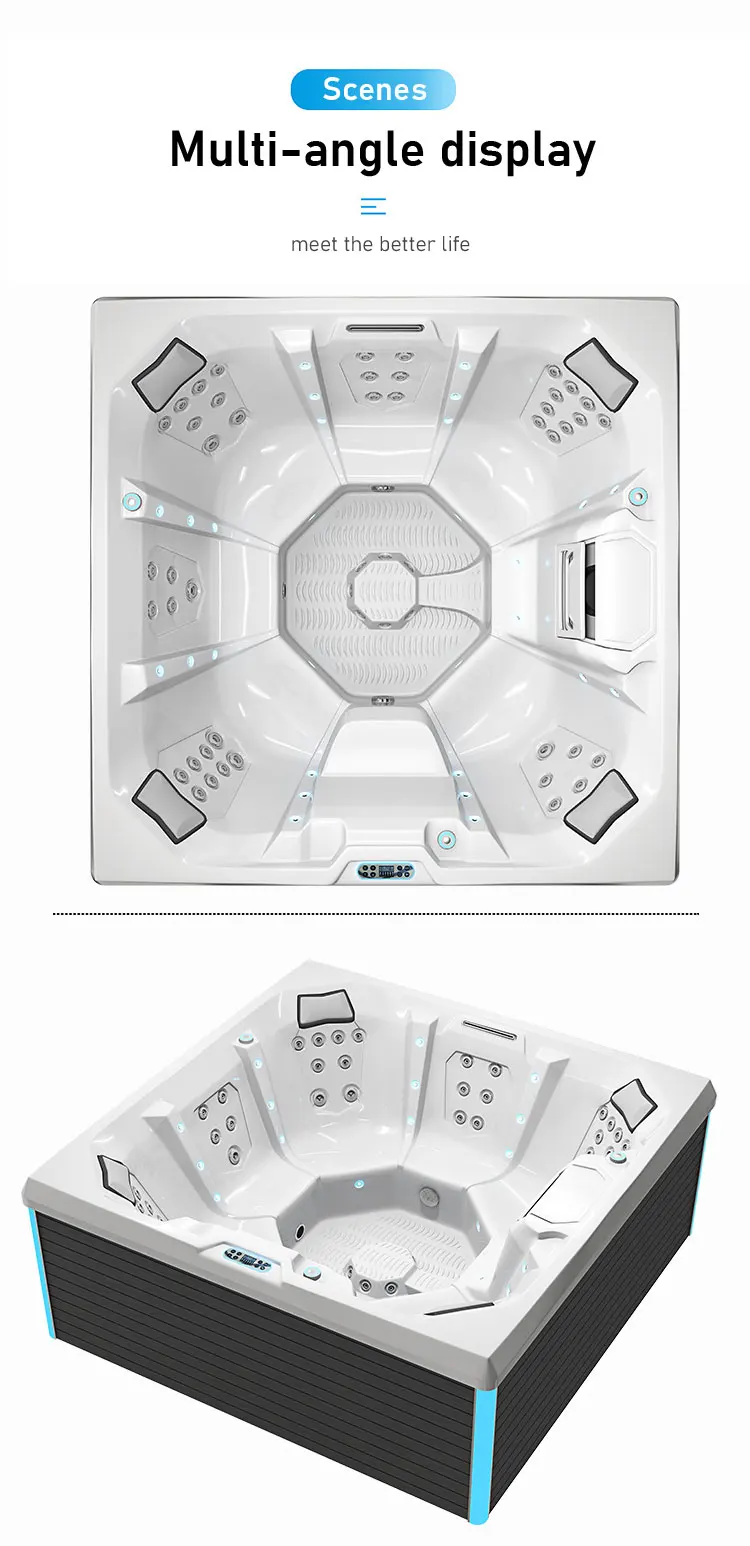 Includes water and 6 adults weighing 392kg.each Export models available heater can changed to US standard and AU ev Standard |