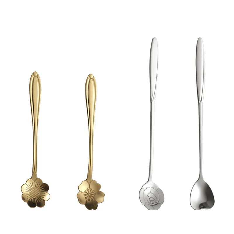 Горячая Распродажа золото из нержавеющей стали кофе Роза Ароматизированный Чай вишня ложка