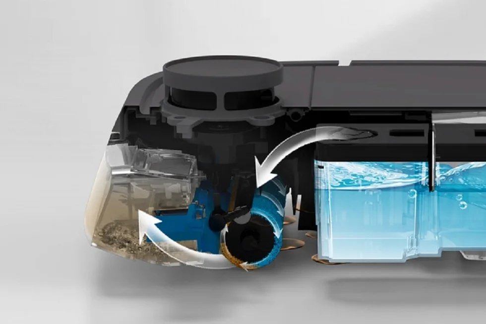 A sensor monitors the condition of the mop. It triggers an automated self-rinse whenever necessary, ensuring that the mop pad is always clean and preventing contamination of the previously cleaned floor areas.