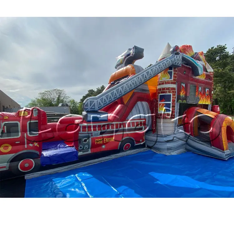 2024 новый дизайн надувная пожарная станция аренда машина надувной дом горка Прямая продажа с завода