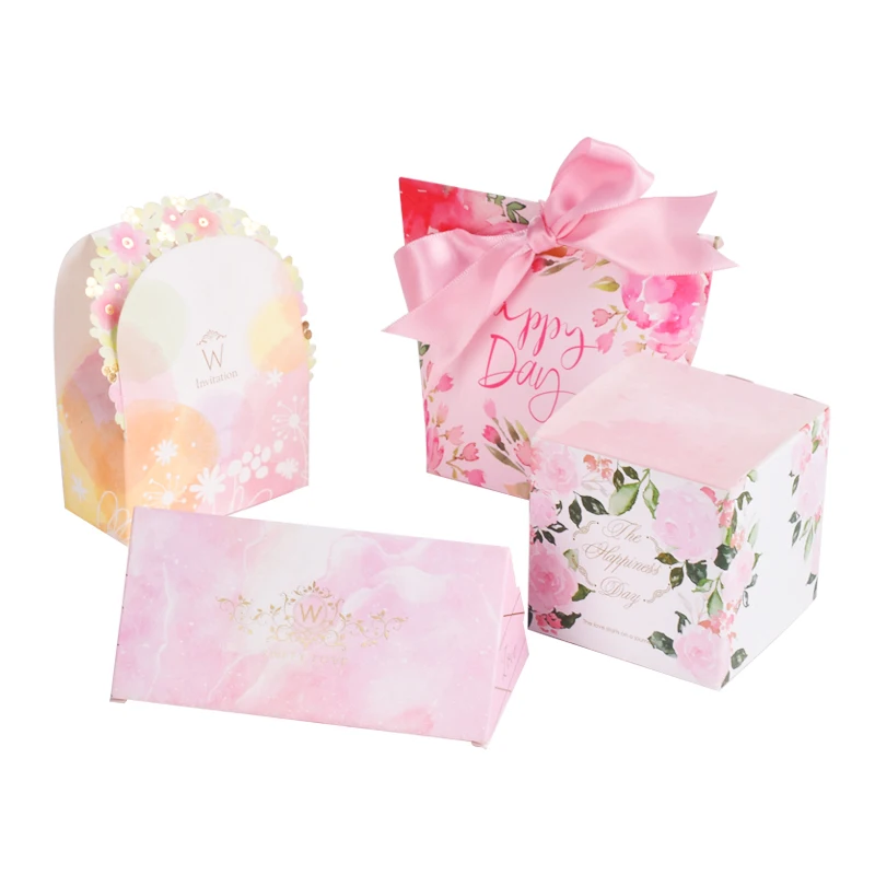 Оптовая продажа Роскошный милый свадебный подарок упаковка для конфет Подарочная коробка с лентой
