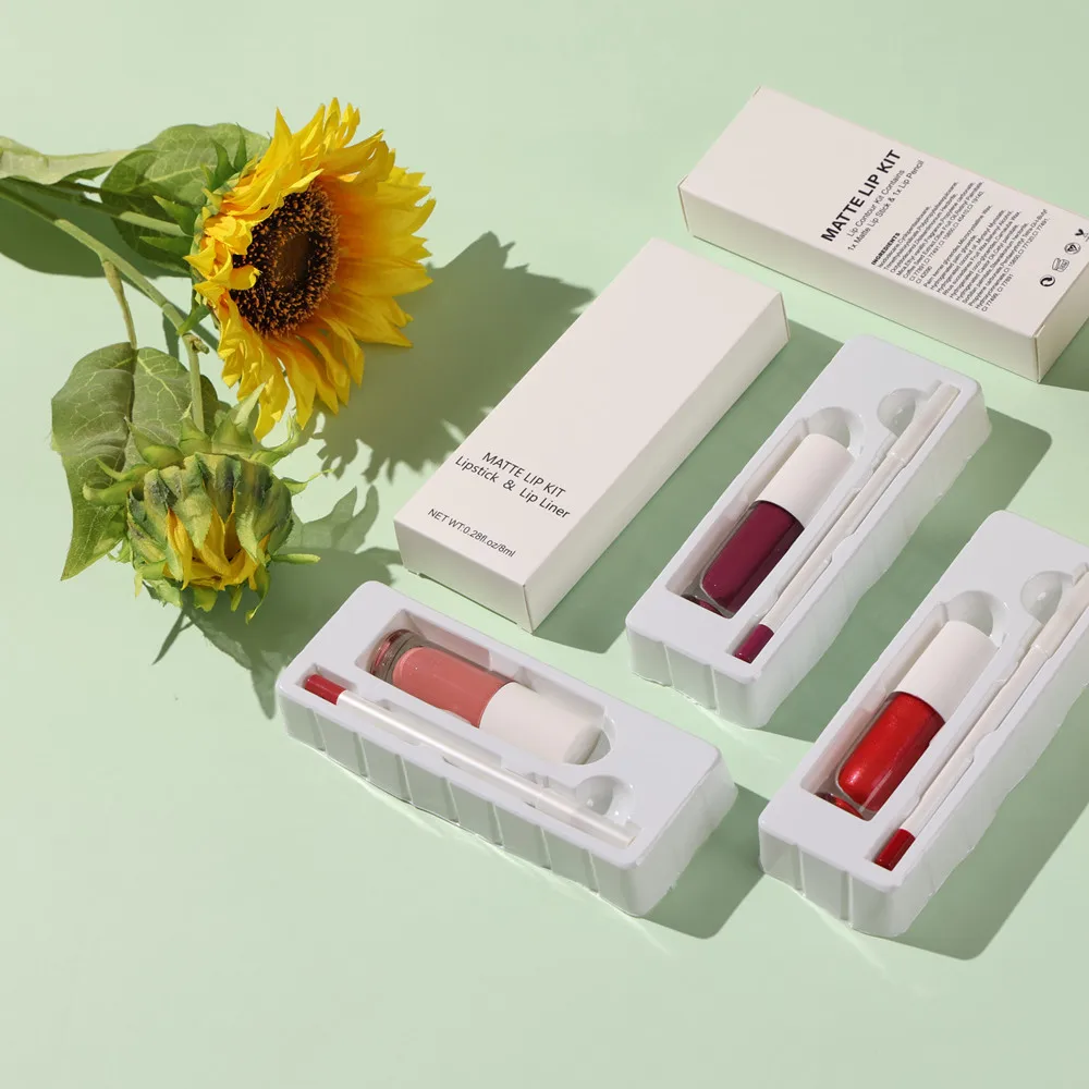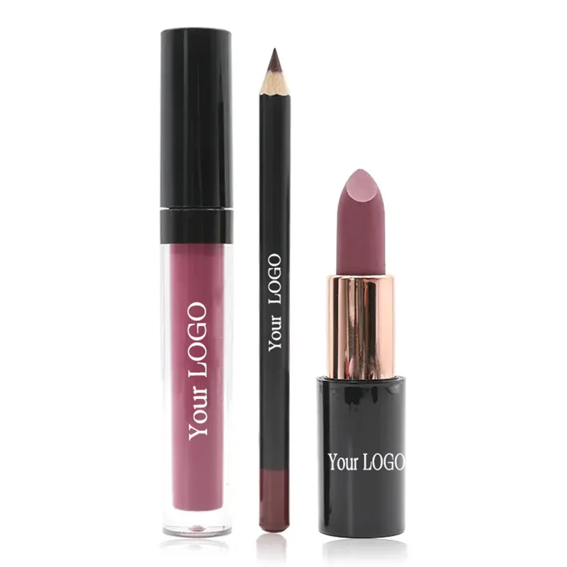 Набор для губ с собственной торговой маркой, Роскошный Матовый лайнер для губ, жидкая помада и матовая помада, оптовая продажа, Стойкий матовый набор для губ 3 в одном