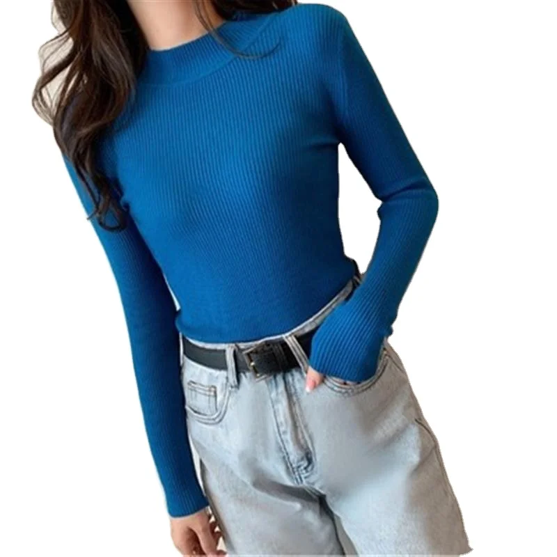 Шерстяной вязаный свитер, топ, Женская осенне-зимняя Стильная удлиненная рубашка 2021 с тонким и тонким свитером с высоким воротником