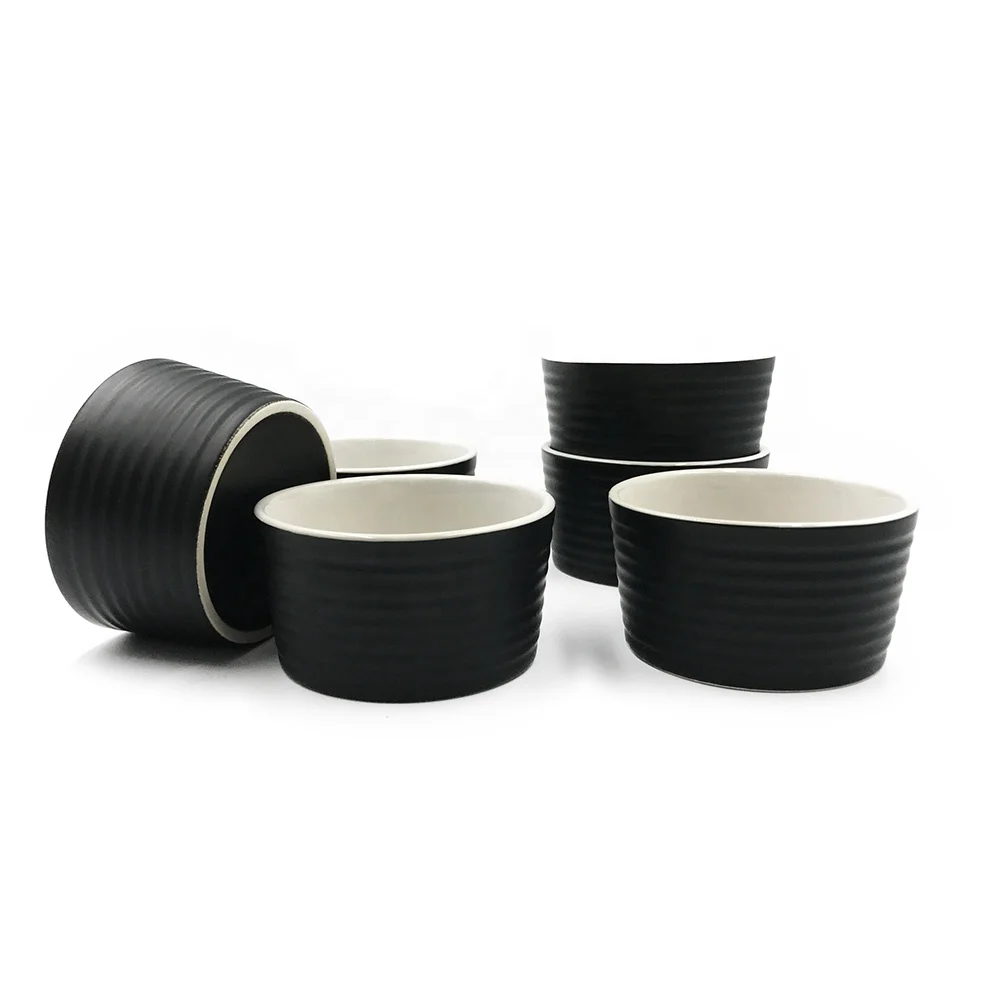 Крутая черная керамическая посуда, десертная посуда, миска для пудинга, набор из 6 керамических тарелок для выпечки ramekins