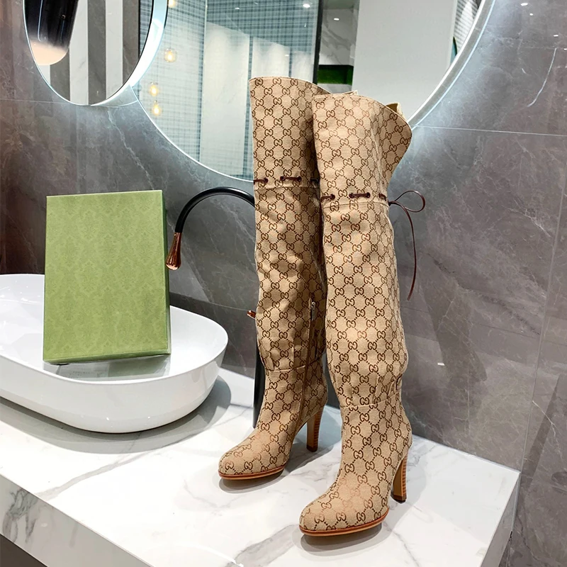 Сапоги женские на высоком каблуке 9 см, сапоги до колена, на толстом каблуке 24 дюйма