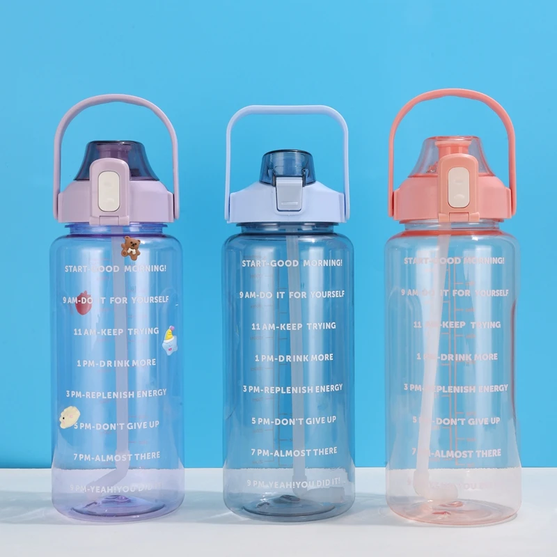 Оптовая продажа 64 унции портативный большой тренажерный зал Bpa Бесплатный кемпинг фитнес индивидуальный 2л Спортивная Мотивационная бутылка для воды с маркером времени