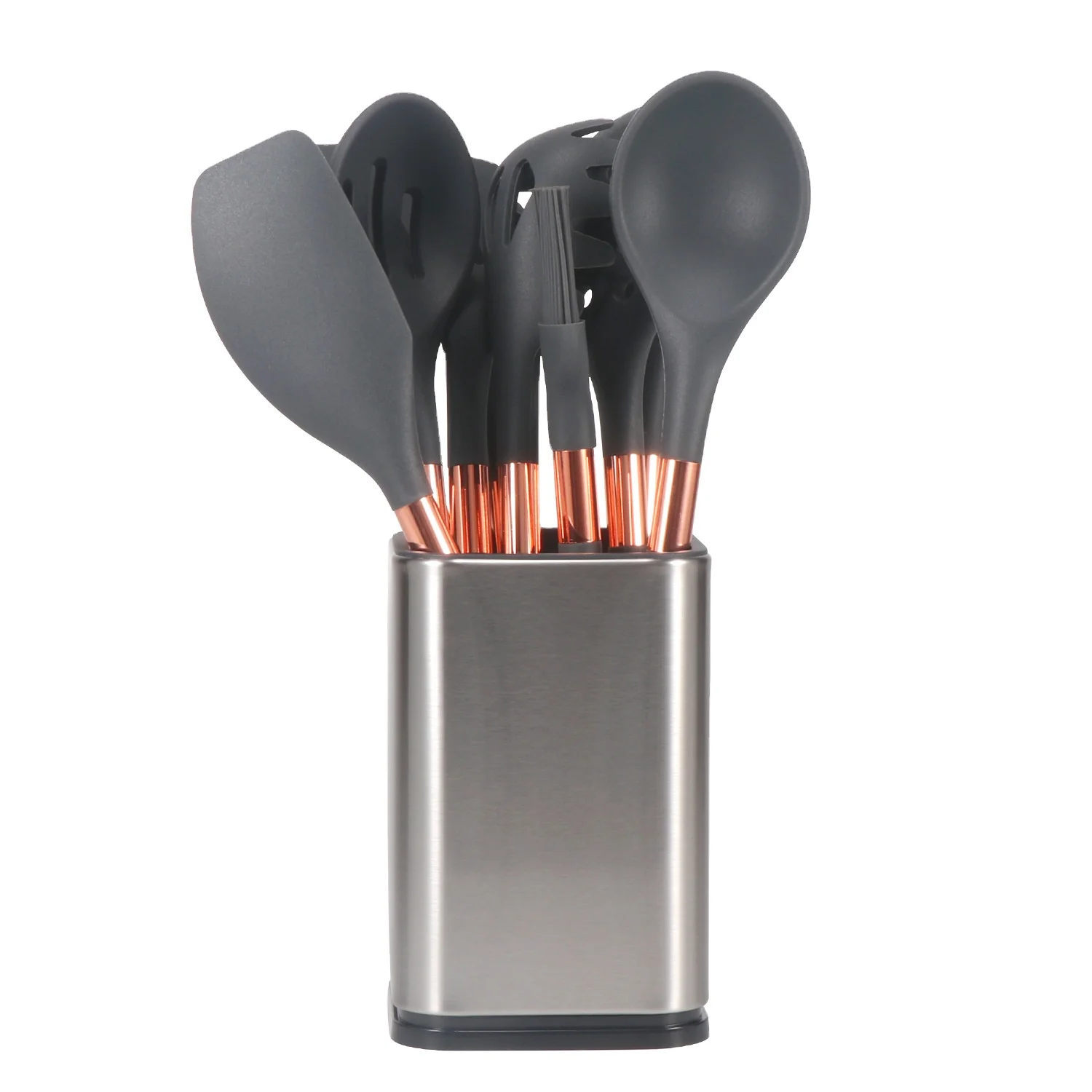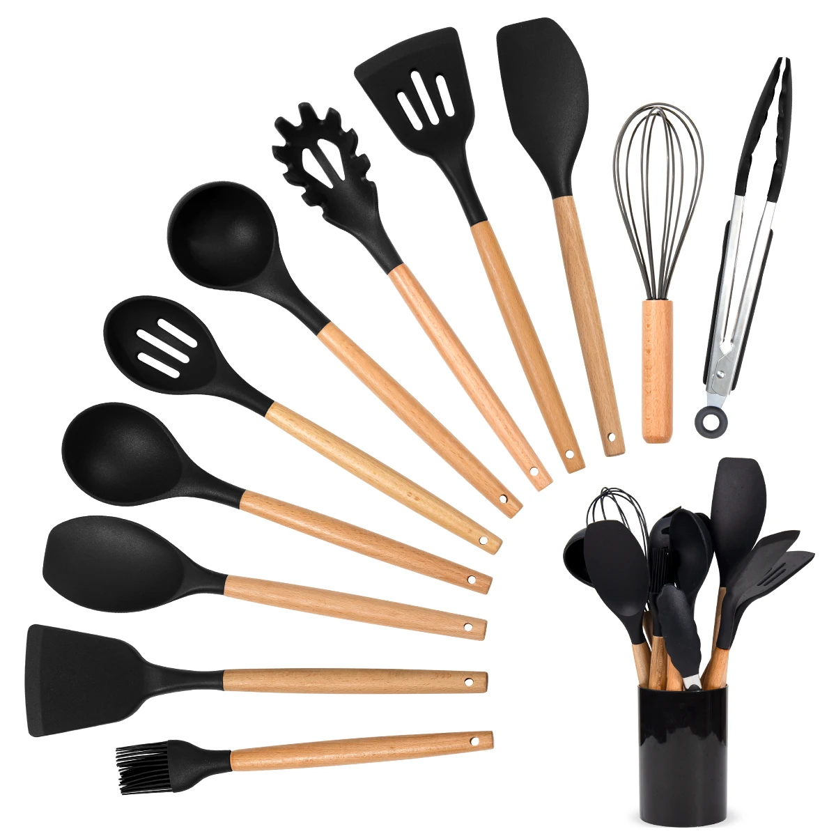 Набор кухонных силиконовых ложек с деревянной ручкой и держателем 7/8/9/12