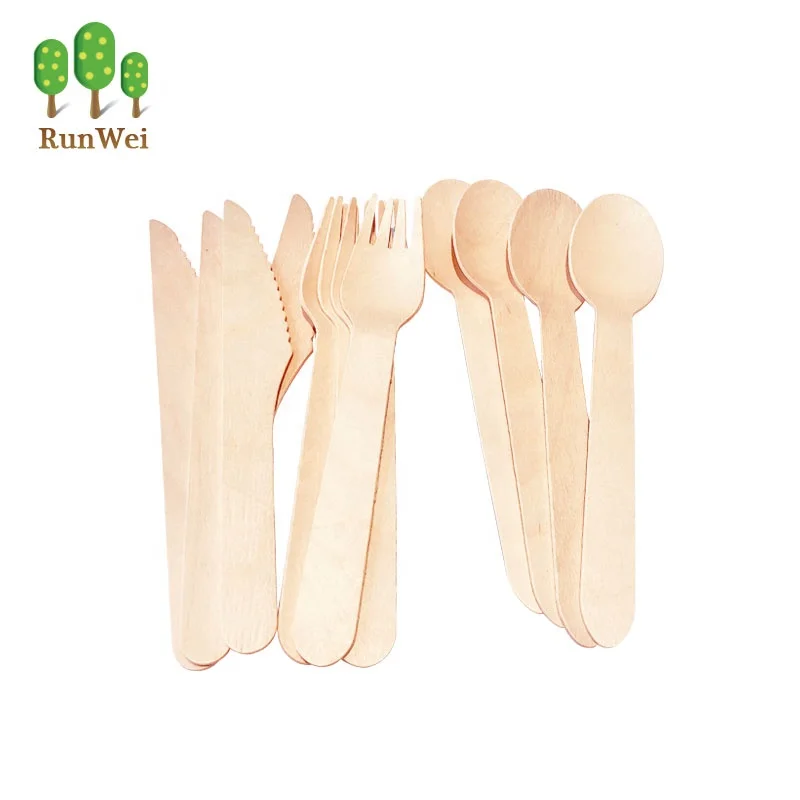 Restaurant Biodegradable Bulk Dinnerware Sets Disposable Wooden Spoons Knives and Forks Eco-friendly Birch Wood Cutlery Set 0,01 $