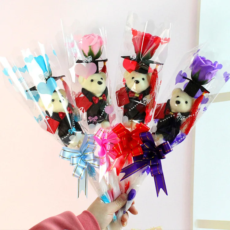 Романтическая роза с маленьким докторским медведем, плюшевый для Дня Святого Валентина, предложение, подарки на выпускной, украшение для вечеринки с цветком девушки