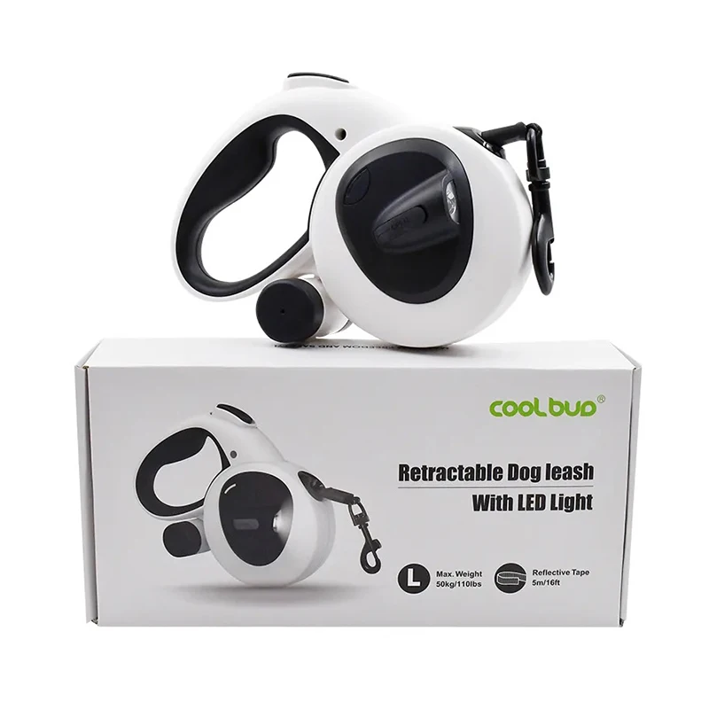 4 в 1 поводок для домашних животных Выдвижной Поводок собак со светодиодной подсветкой дозатор какашек и хранение продуктов