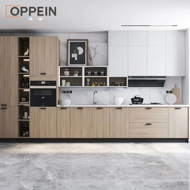 OPPEIN ПВХ пена двойная раковина металлический полный кухонный шкаф набор дешевый модульный дизайн современные кухонные шкафы поставка