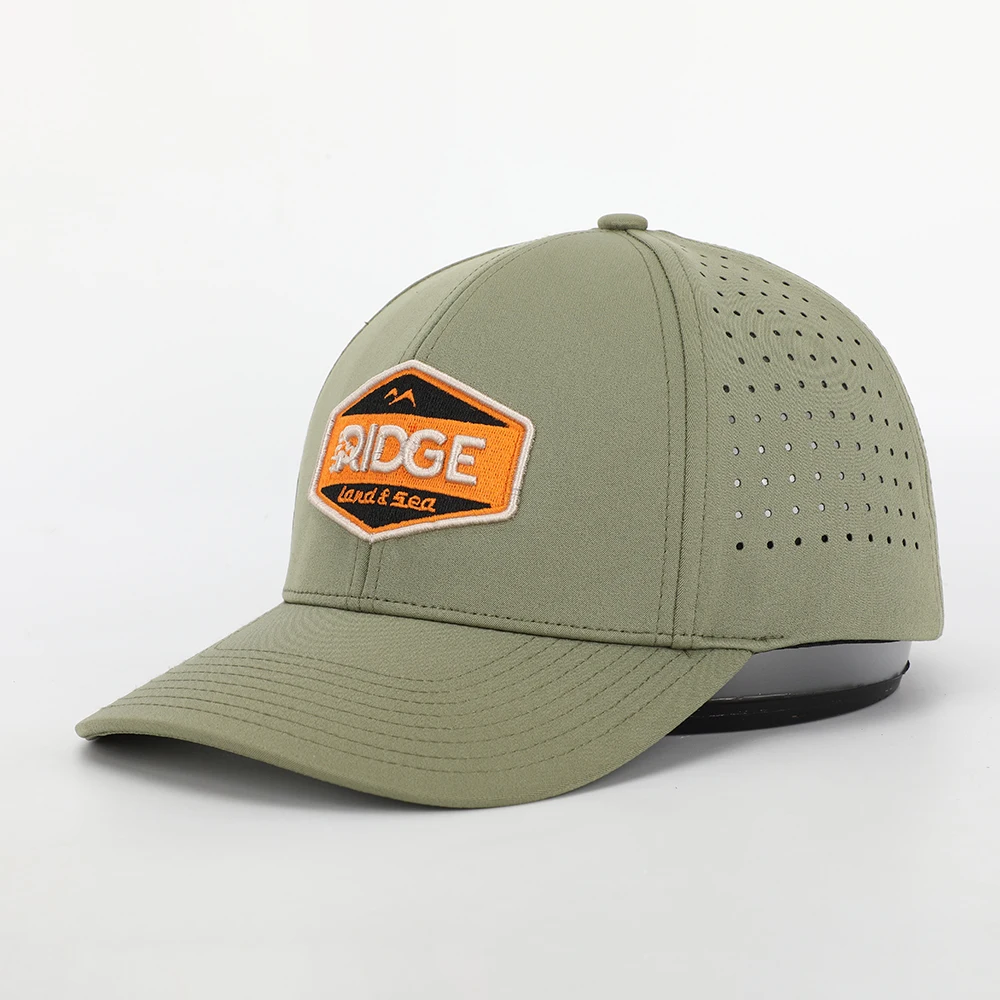 Оригинальный производитель 6 панелей высокое качество армейский зеленый лазерная вырезка перфорированная спортивная бейсбольная кепка с 3d вышивкой логотипа