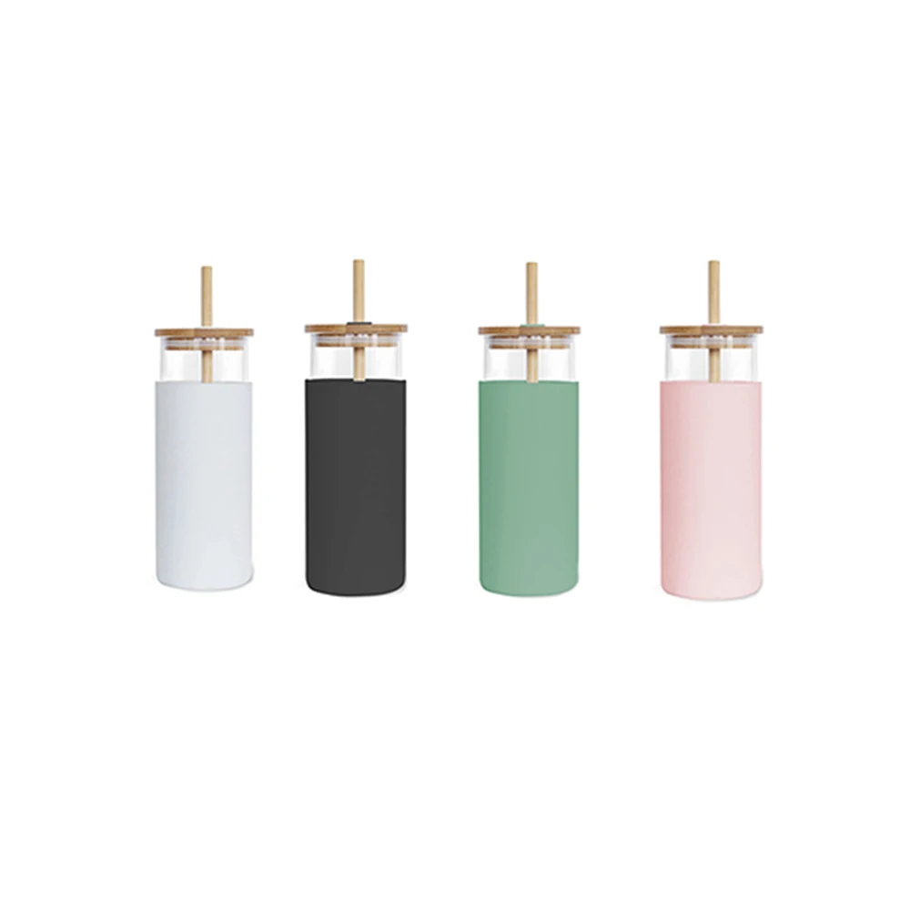 550 мл боросиликатная бамбуковая стеклянная бутылка для воды с силиконовым рукавом