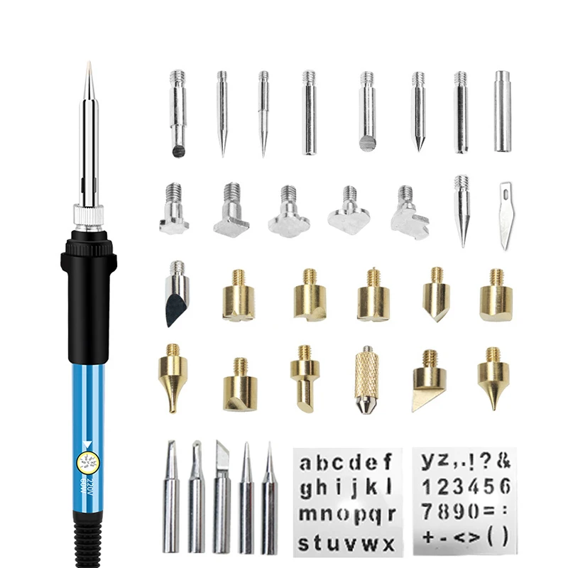 Ручка для сжигания дерева с регулируемой температурой, 35 в 1, 60 Вт, набор инструментов, Пирография, наборы паяльников с наконечниками для сжигания/тиснения древесины