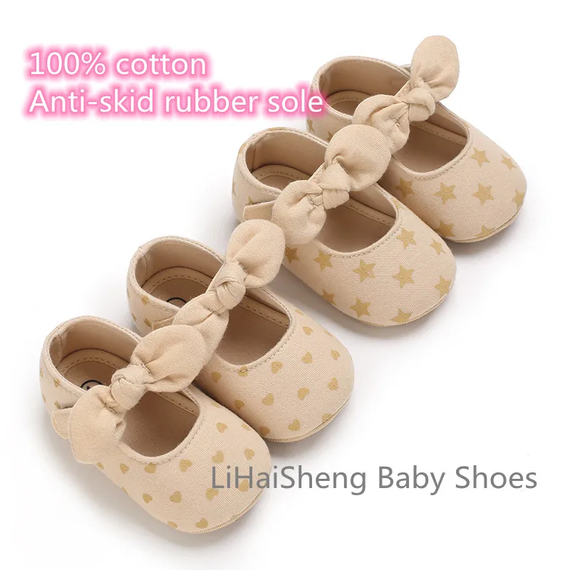 Нескользящие прогулочные туфли для младенцев из 100% хлопка обувь принцессы с бантом влюбленных первых шагов
