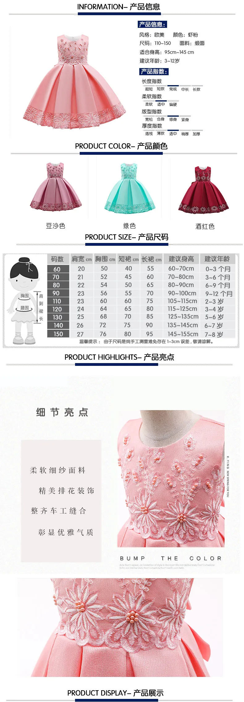 Our main products: children's dress, performance dress, dress shawl