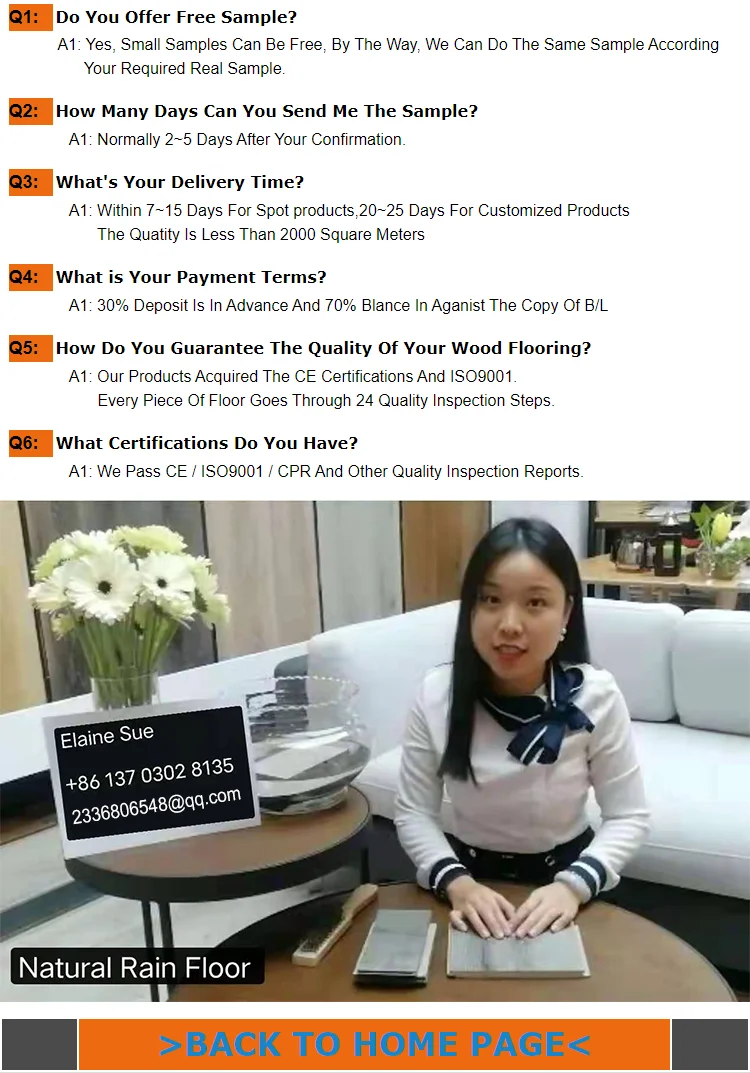 ·Durable, stain resistant, anti-abrasive & fade resistant. ·Flooring can be fitted over most existing floor surfaces, saving you time & money. ·Low cleaning maintenance and is easily cleaned using a damp cloth. ·Natural Rain laminate Flooring is natural product that’s both environmentally friendly and 100% biodegradable.