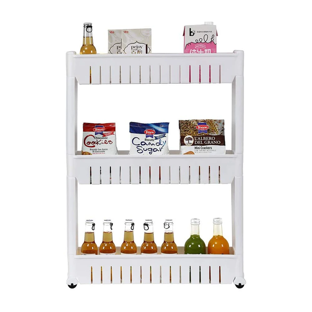 3 уровня выскользнуть кухонная полка для хранения вещей Башня Полка Органайзер повседневной домашней тонкий тележка узком пространстве на колесах