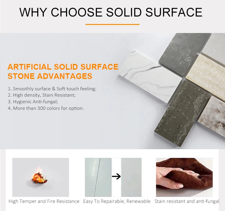 Material | All visible part pure solid surface or translucent solid surface |
