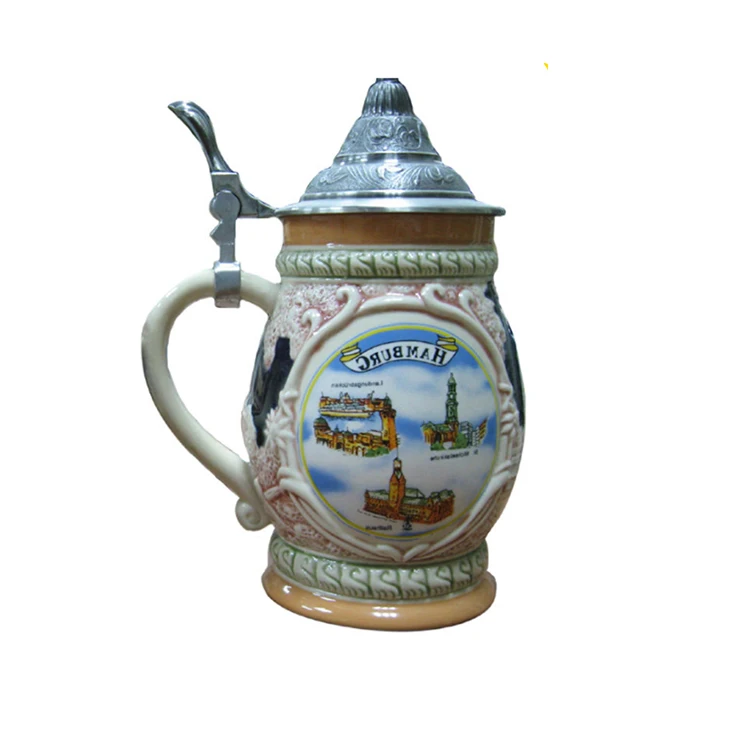 Viva carevale сцена 19-го века Европейский уличный Декор керамический немецкий пивной Штейн с металлической крышкой