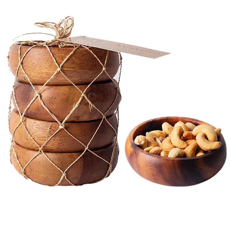 Оптовая продажа деревянные миски из акации для фруктового салата с ложкой и вилкой