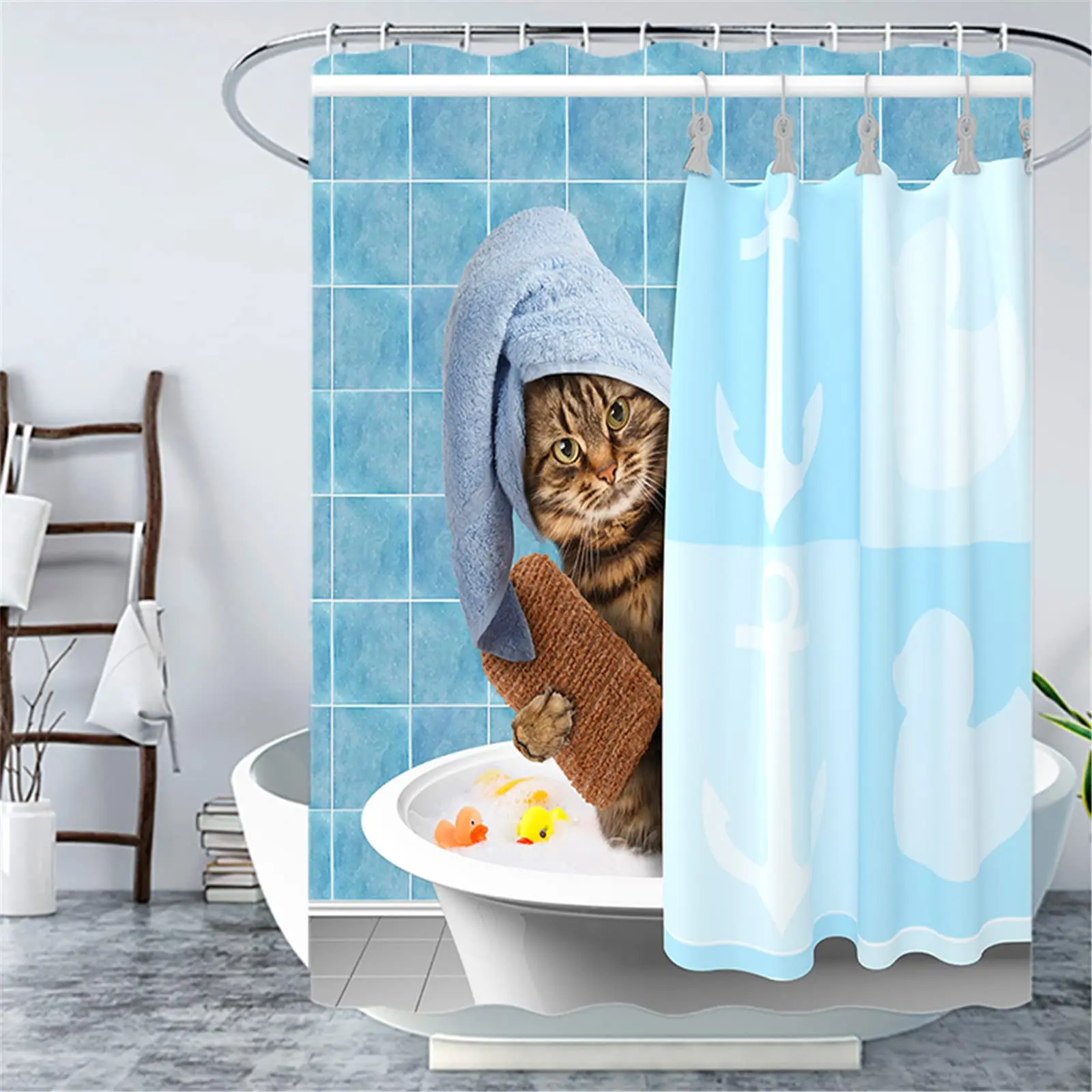 Оптовая продажа занавеска для душа из 100% полиэстера с 12 крючками быстросохнущие Водоотталкивающие шторы принтом ленивого оттенка ванной комнаты домашний