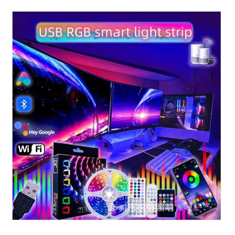 USB Светодиодная лента, 5 В, Wi-Fi, синхронизация ТВ, подсветка, 5050, водонепроницаемая, 2 м