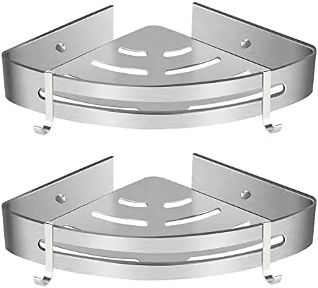 Угловая полка корзина для душа без сверления угловой органайзер хранения клей алюминиевый настенный с крючками (Tr
