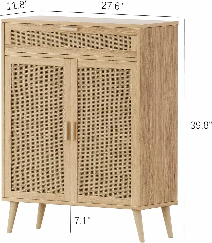 Деревянный независимый шкаф для хранения с дверцей из ротанга и большим ящиком домашнего декора двухдверный