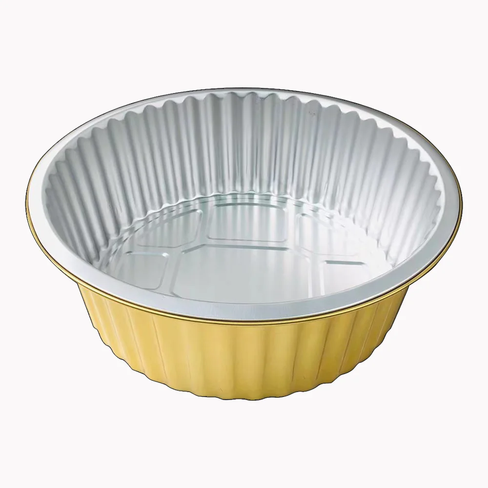 Сделано в Китае, одноразовые красочные золотые контейнеры из алюминиевой фольги, круглые чаши из алюминиевой фольги с крышкой
