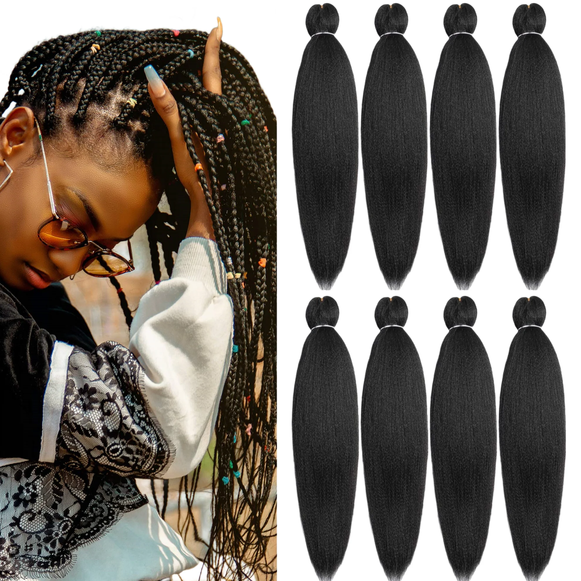Длинные прямые красочные синтетические накладные волосы предварительно растянутые Заплетенные мишура для волос с растянутыми заплетенными волосами