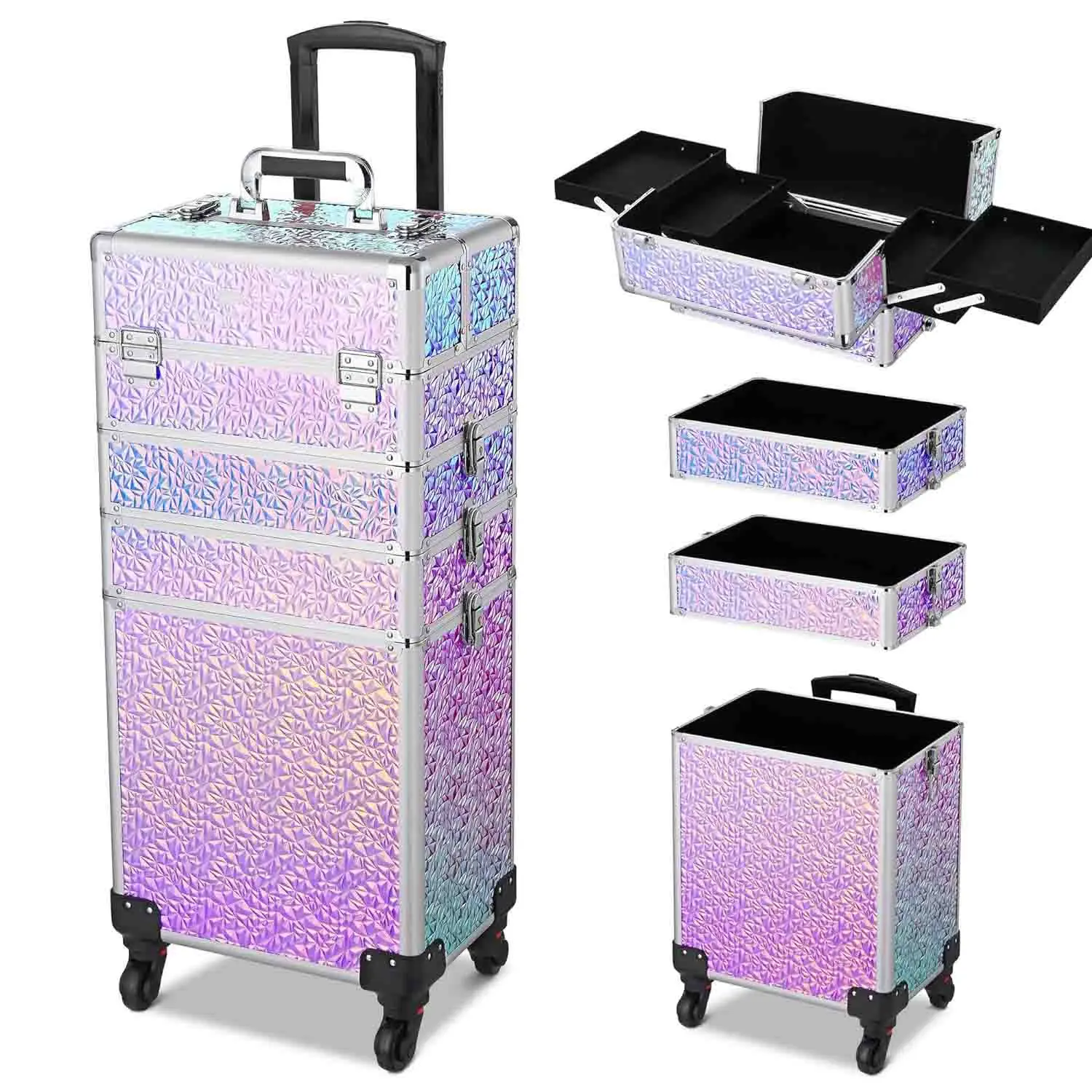 Хит продаж, кейс для косметики, 4 в 1, органайзер для тележки, дорожный кейс для парикмахерской, косметический кейс со съемными колесами