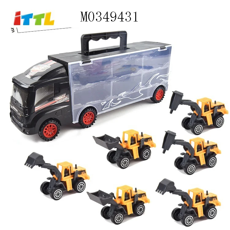1/64 детский игрушечный грузовик из сплава литой под давлением модель грузовика с 3 гоночными машинами