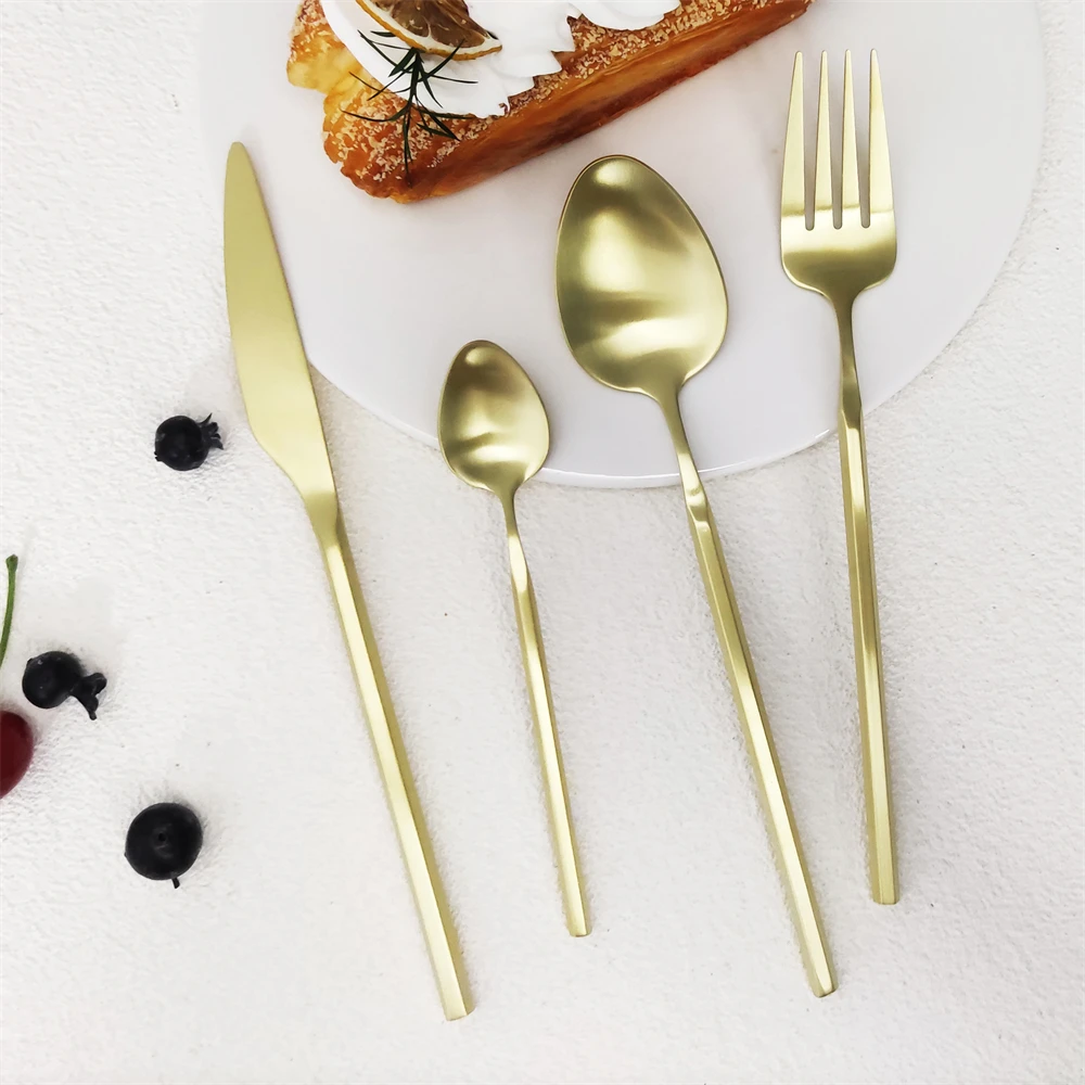 High Quality Gold Stainless Steel Cutlery With Ceramic Handles Flatware Mirror Knife Fork Spoon Silverware for Restaurant Silver